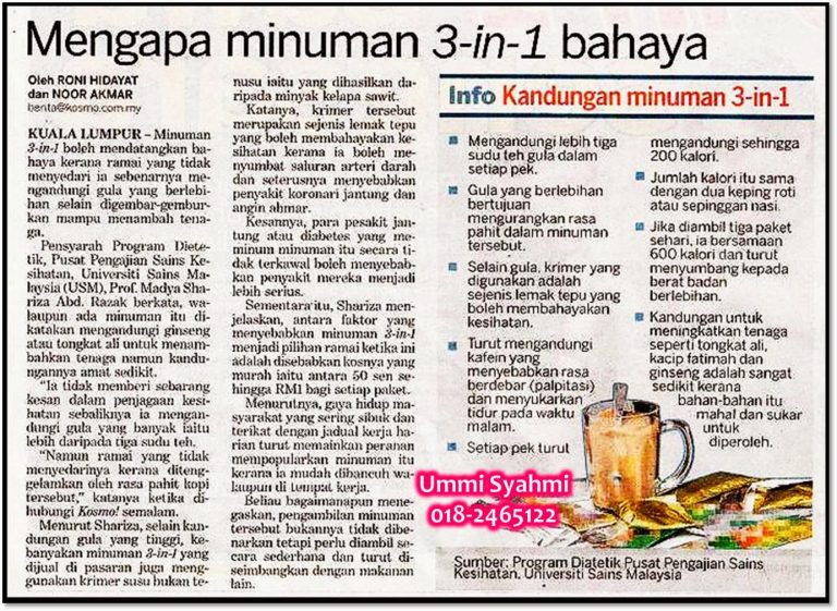 Ramai Rakyat Malaysia Menggemari Kopi 3 in 1 Tanpa Tahu Risiko Pengambilannya Untuk Jangka Masa Panjang