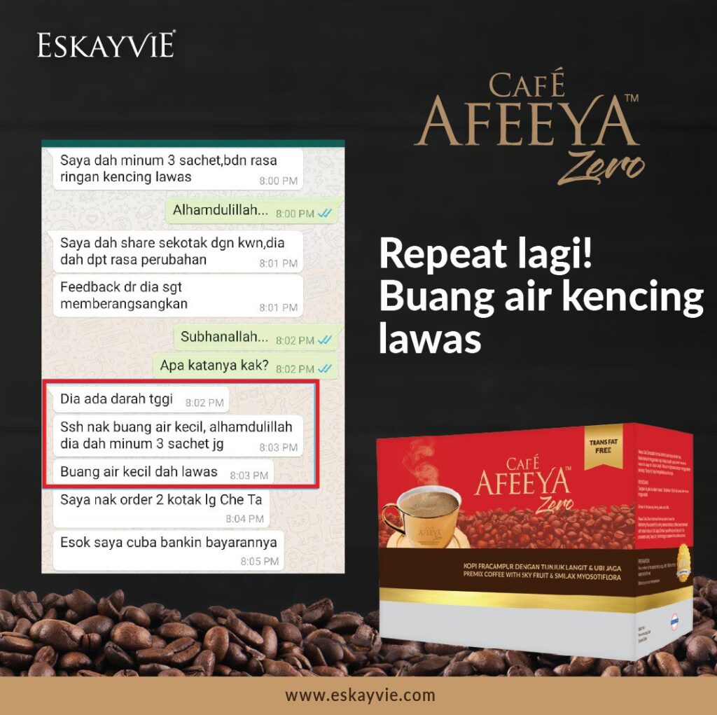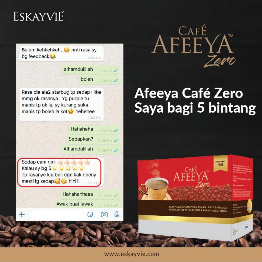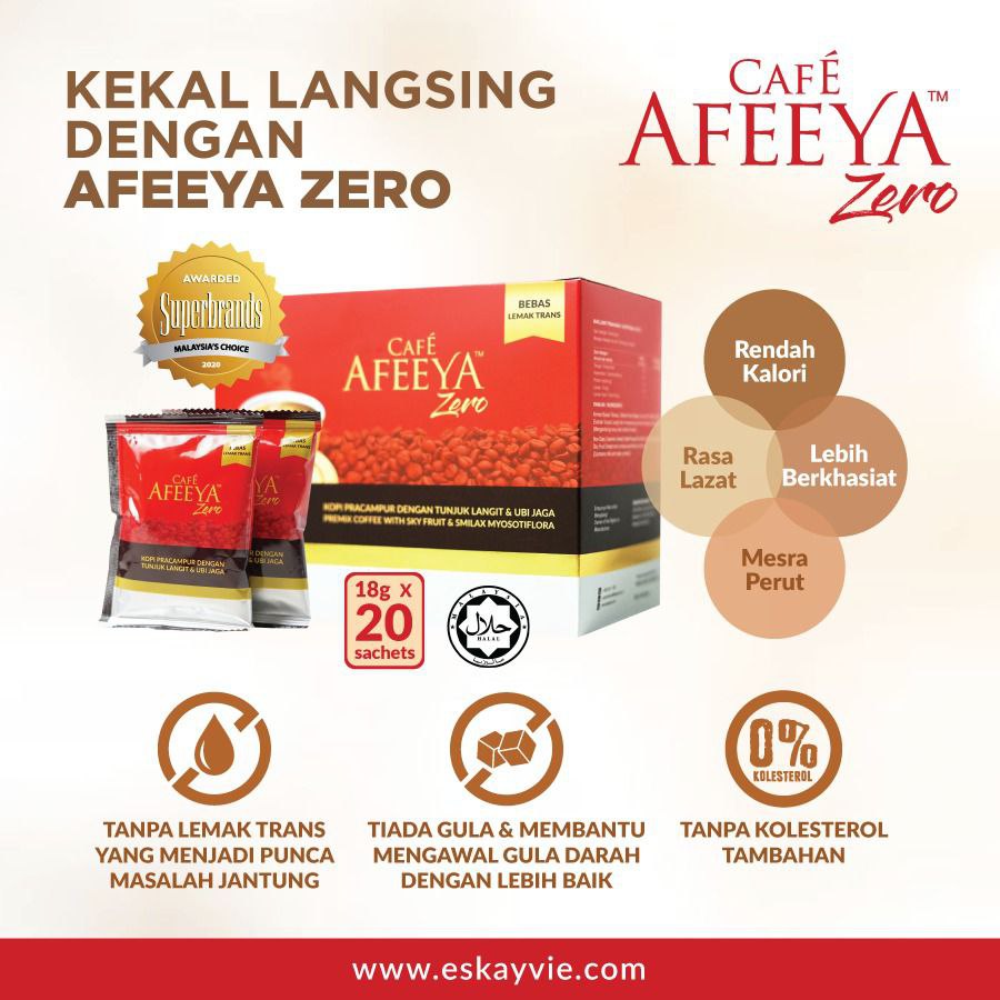 AFEEYA CAFE ZERO Kopi 4 in 1 Pertama Di Malaysia Tanpa Gula Dan Lemak Trans Sesuai Bagi Penghidap Kencing Manis Serta Yang Mengamalkan Diet Untuk Menjaga Kesihatan Dan Mengawal Berat Badan