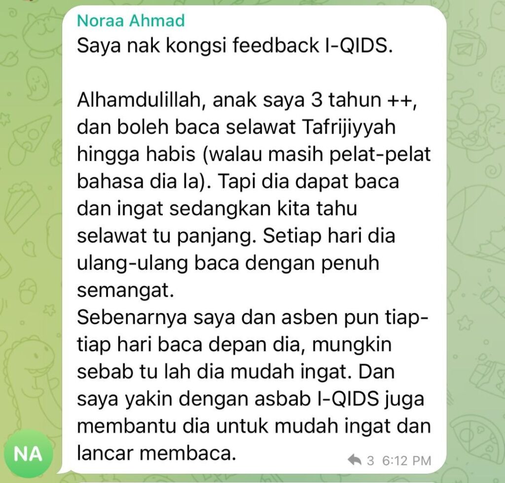 Jom kita lihat feedback positif anak-anak bila amalkan i-Qids