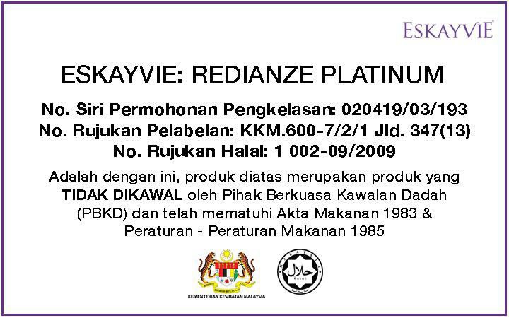 Ya. Eskayvie Redianze Platinum diiktiraf HALAL oleh Jabatan Kemajuan Islam Malaysia (JAKIM).